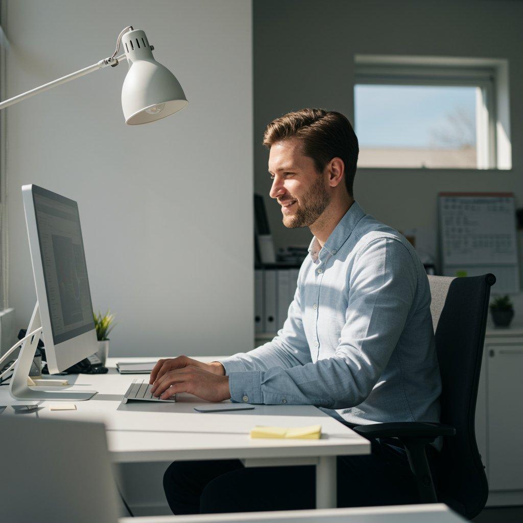 Pracownik korzystający z szybkiego internetu